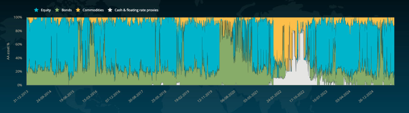 Simply put, the system tries to find out where we are in the economic cycle on a daily basis to extract a reasonable strategic asset allocation for such cycle phase. Then, it looks at a plethora of variables and datapoints detached from the cycle - think about momentum price trends or sentiment - to fine tune the tactical asset allocation to the daily environment.